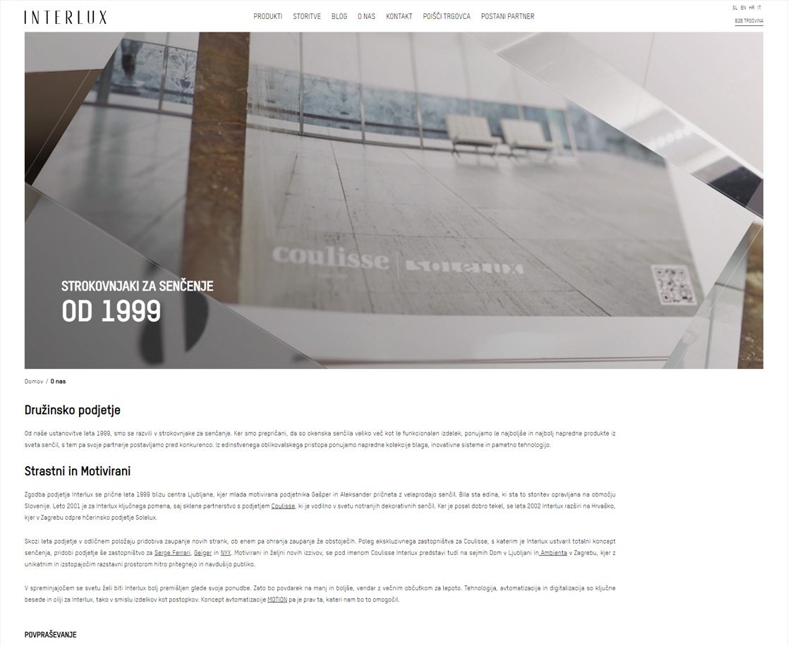 The story of the company Interlux began in 1999 near the center of Ljubljana, where two young and motivated entrepreneurs Gašper and Aleksander started the wholesale of window coverings. They were the only ones to provide this service in Slovenia.